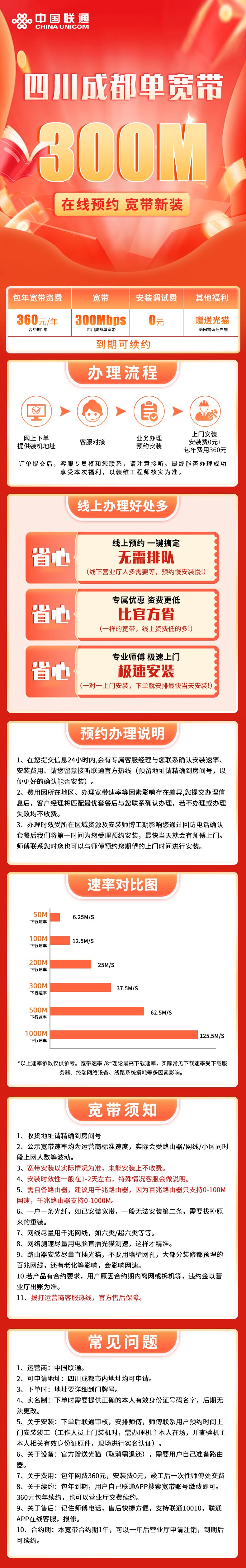 1、在您提交信息24小时内,会有专属客服经理与您联系确认安装速率、安装费用、请您留意接听联通官方热线(预留地址请精确到房间号,以便更好的确认能否安装)。